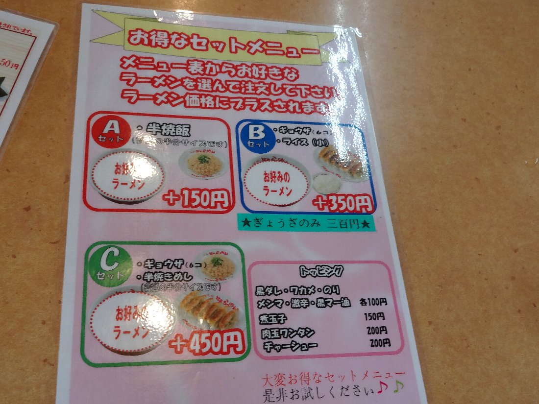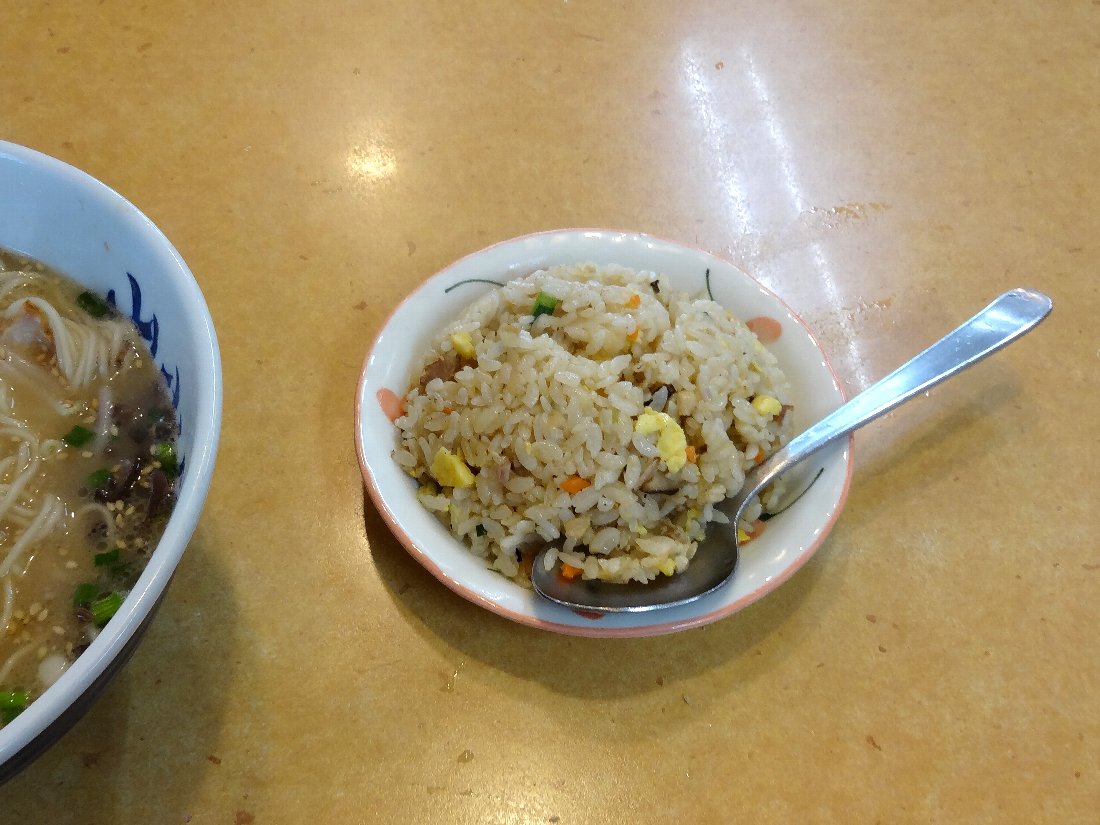 セットメニューでは「ラーメン+半炒飯」が+150円なので二人ともそれを頼むことにしました