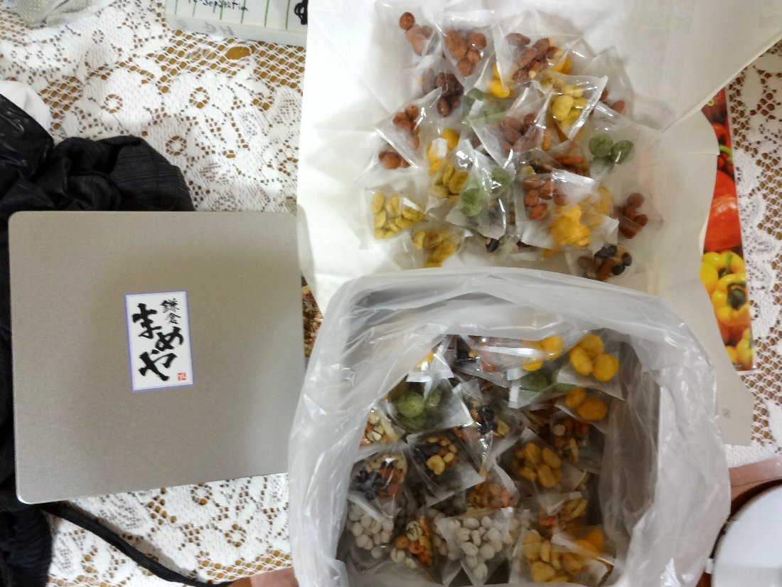 中身は「鎌倉まめや」というお店の「豆」の詰め合わせでした・・・こちらは長崎に来た時に足を骨折したのが治ったのでその「快気祝い」ということでその場にいた全員に送ったそうです
