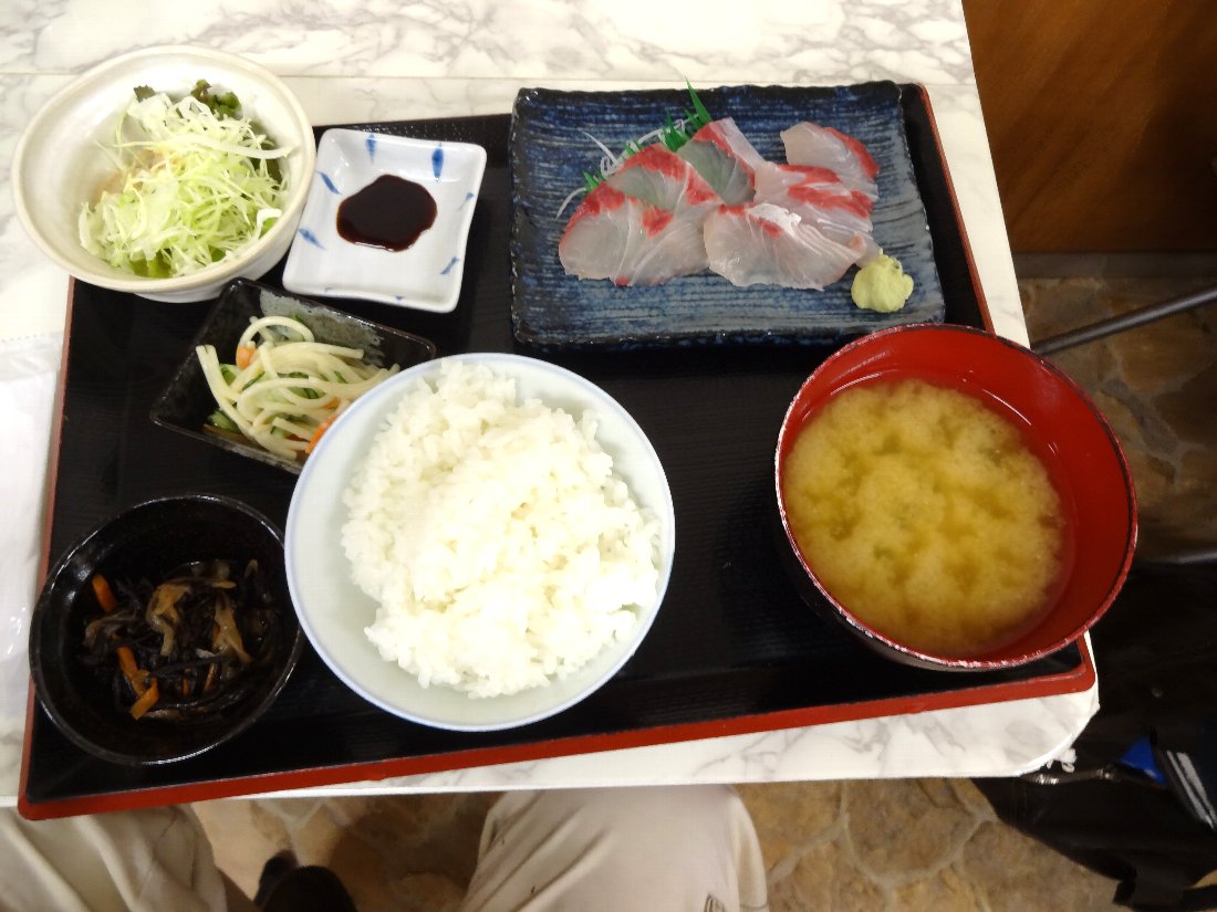 私は今まで頼んだことが無いメニューを食べてみようかなと思い注文したのは「ひらす刺身定食」550円税込です・・・小鉢に「アジフライ」が付いているのじゃないかなと思ったのですが残念ながらありませんでした(^^;