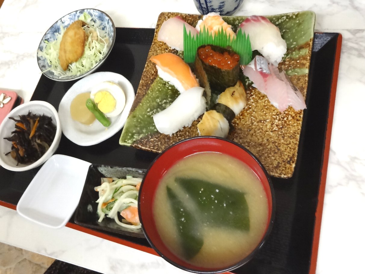 女房はワンパターンの「にぎり寿司定食」880円税込を頼んでいましたがこちらには「アジフライ」が付いていました(^^;