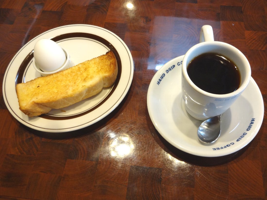 私が頼んだ「星乃ブレンド」+「厚切りトースト&ゆで卵」のモーニングセット400円税別です・・・トーストとゆで卵は想像通りの味でしたがやはり「珈琲」は美味しかったですね