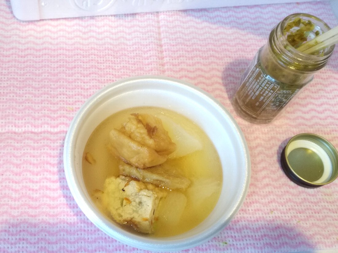 何せ「蒲鉾屋」さんですから野菜は「ダイコン」くらいしかなくほとんどは「かんぼこ」なんですが「あごだし」で結構美味しいのです・・・しかもお替わりも自由ですし頼めばお持ち帰りも出来るんです(^O^)