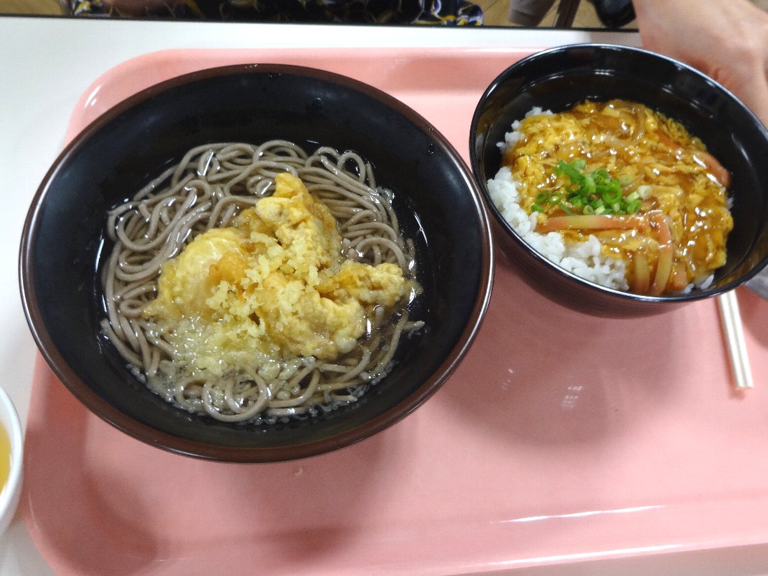 これがこの日の「Bランチ」である「木の葉丼+とり天そば」530円の見本ですが