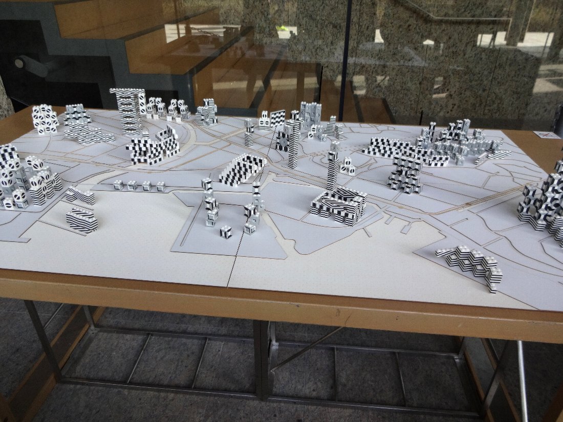 連絡通路を渡って「運がギャラリー」に行きましたが「錯視ブロック」というので作られた「錯視地図」というのが展示されていました