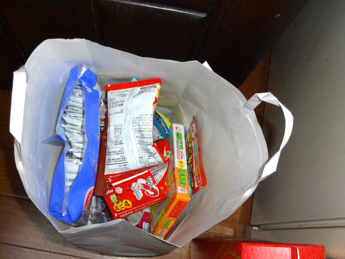 そういえば玄関に孫用のお菓子や