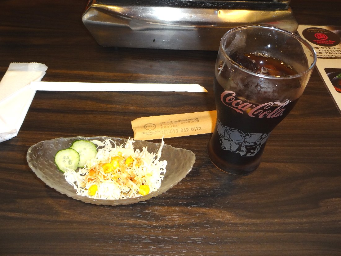 まず最初にセットの「サラダ」と「アイスコーヒー」が運ばれてきましたが「アイスコーヒー」が「コカ・コーラ」のグラスに入っていたのはちょっと(^^;