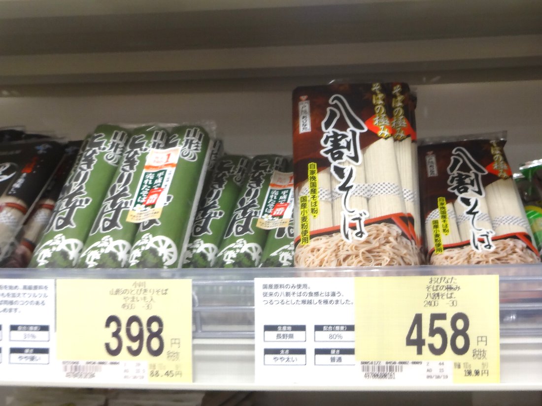 ついでに西友の1階にある食品売り場に寄ったのは最近お気に入りの「おびなた」の「八割蕎麦」を買うためですが隣にある「山形のとびきり蕎麦」というのも気になりますね