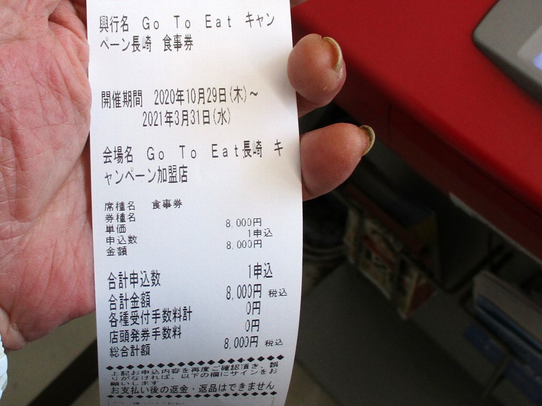 これが「GoToイート長崎県版」のチケットです・・・1000円券が10枚で8000円ですから25%のプレミア付になっているのです