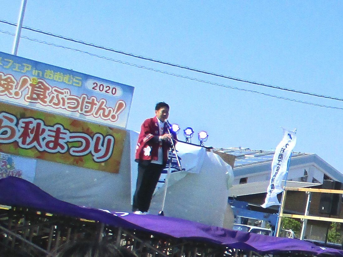 一番端にあるステージの前を通ると園田大村市長が挨拶をされていました