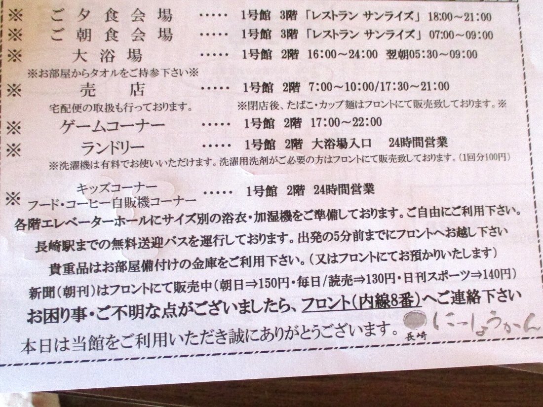 到着したのは「長崎にっしょうかん」です・・・私が長崎駅前のホテルに勤務していた頃は「ホテル日昇館」といって長崎市内でも5本の指に入る「観光旅館」でしたね