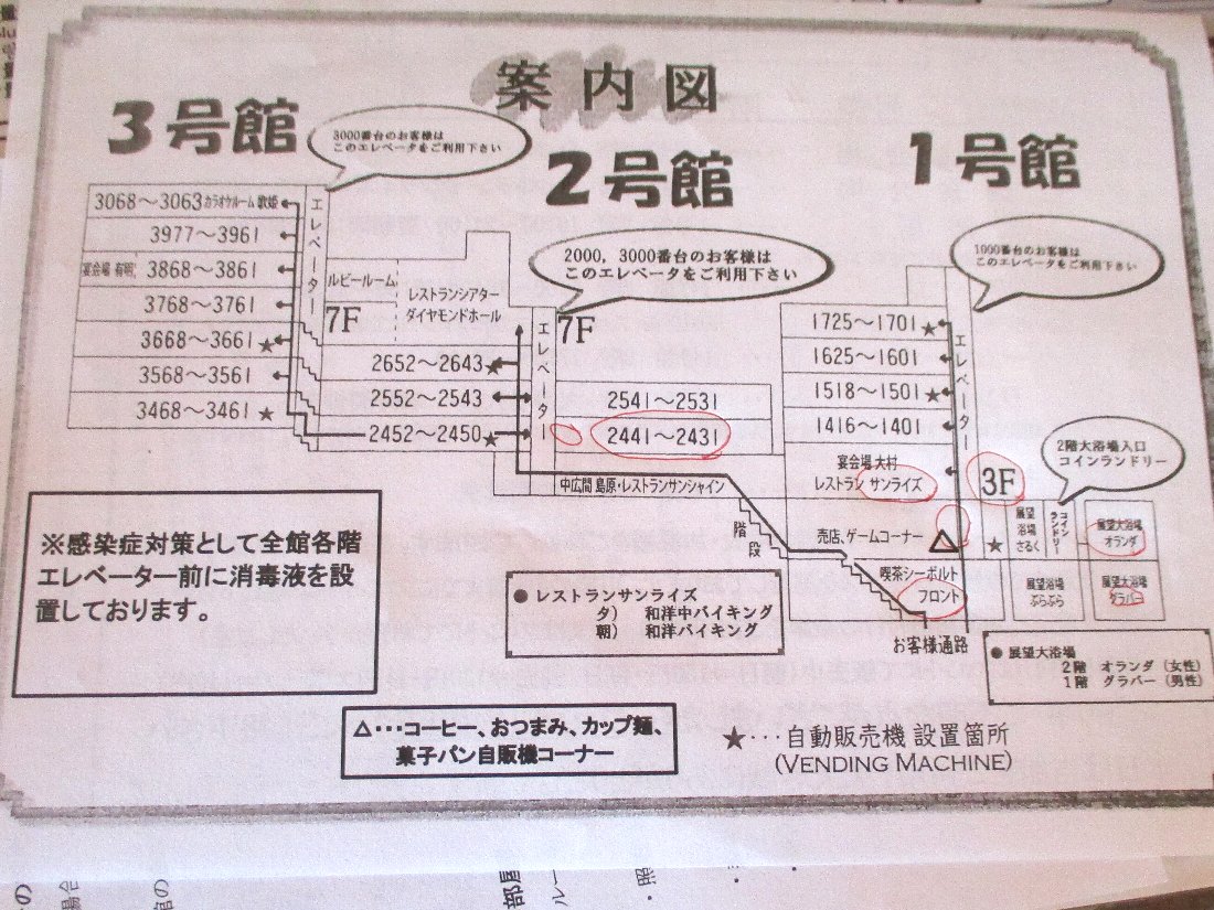 館内に入るのは30年ぶりくらいですから全く記憶にありません(^^;・・・チェックインはフロントでは無くロビーに点在しているテーブルで必要事項を記入するんですね(無論検温とチェックシートへの記入が必要です)