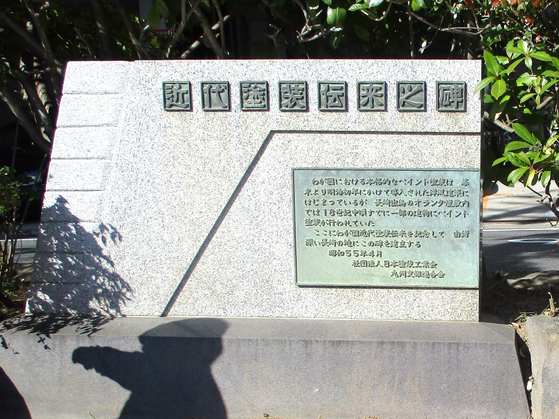 「湊公園」に来るのはほとんどの場合「長崎ランタンフェスティバル」の時ですから会場に設けられる「ステージ」の裏の部分にあたる場所に「近代塗装伝来の碑」というのがあるのには全く気が付きませんでした