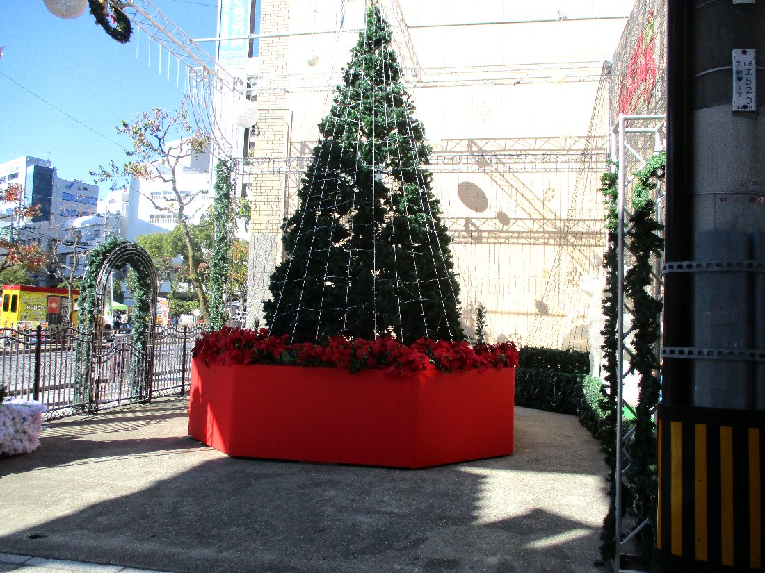 浜町から「新地中華街」を抜けて「湊公園」にやってきました・・・「ランタンフェスティバル」の時に「蘇州林」が大きな出店を出すスペースに「クリスマスツリー」が飾られていました(^^)