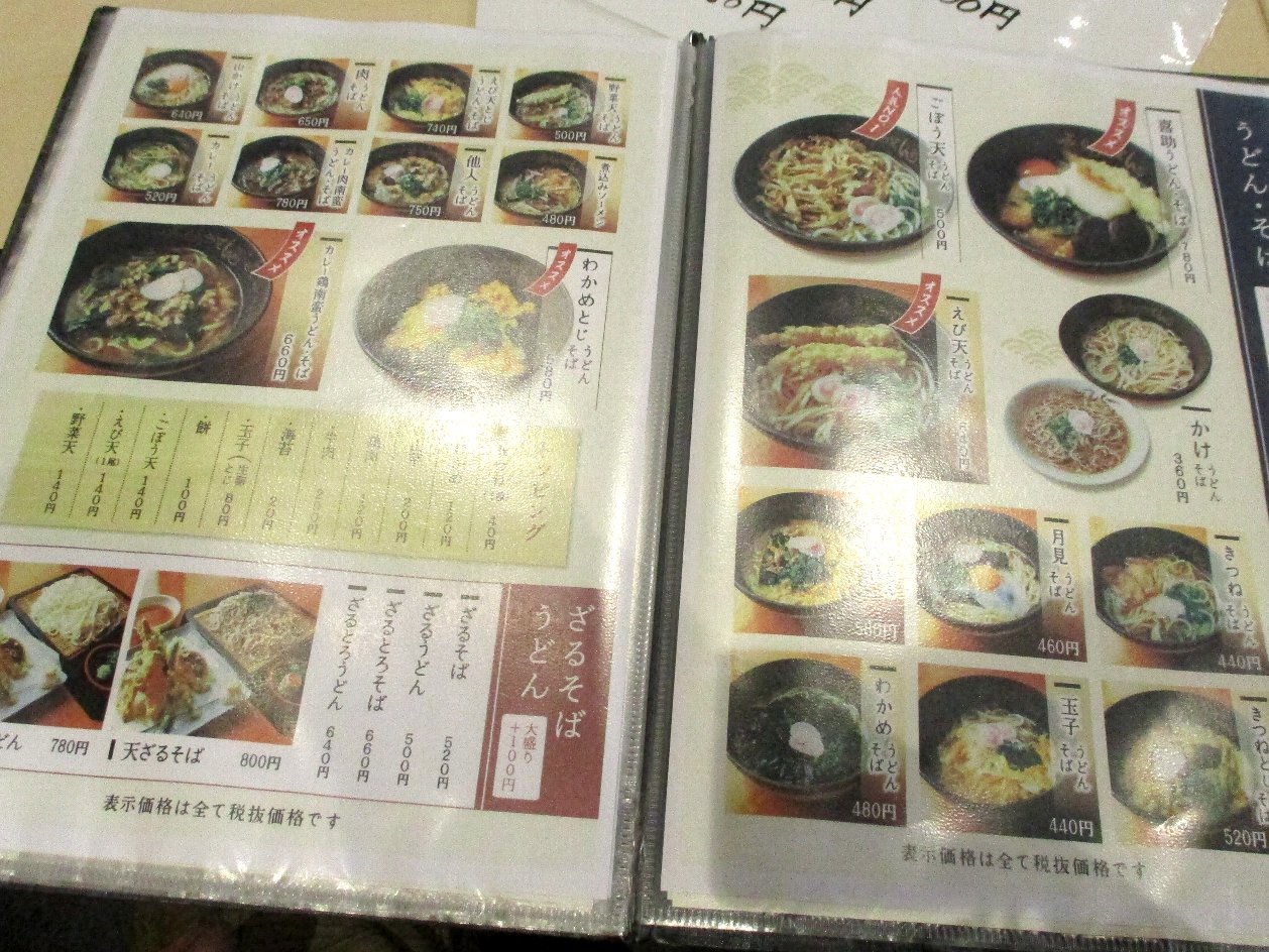 「かけうどん」が360円税別からありますが初めて入った10年ほど前は380円税込だったのでほとんど値上げしていないのですね