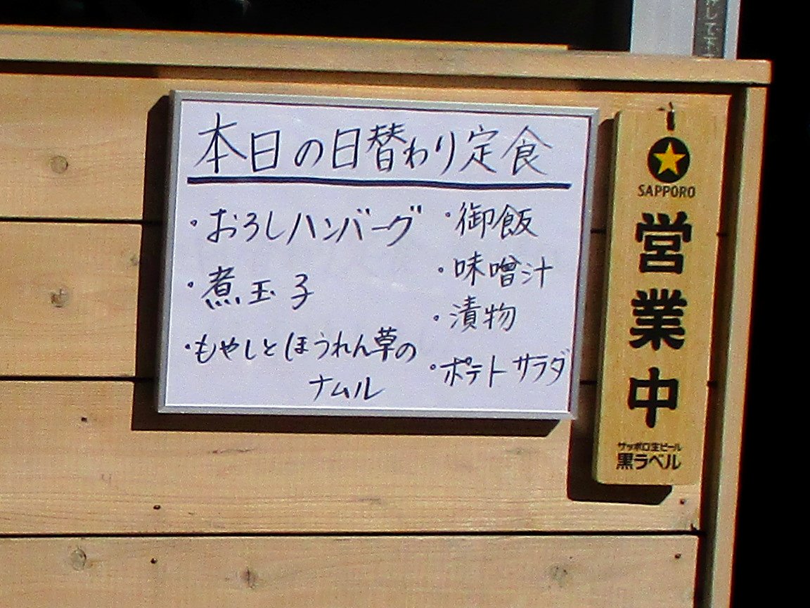 「日替り定食」は「おろしハンバーグ+小鉢3種」で580円税別だそうですが
