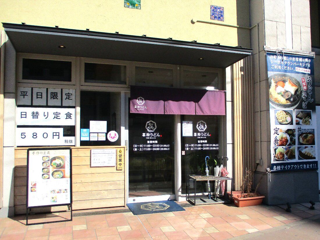 そこでやってきたのは新大工にある「喜助うどん」ですが店舗をアーケードから電車通り沿いに移転してからは初めて訪れます・・・そういえばこの場所にはずっと以前には「カフェ チェントアニ」&「モナミハンバーガー」がありましたね