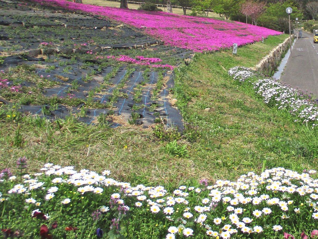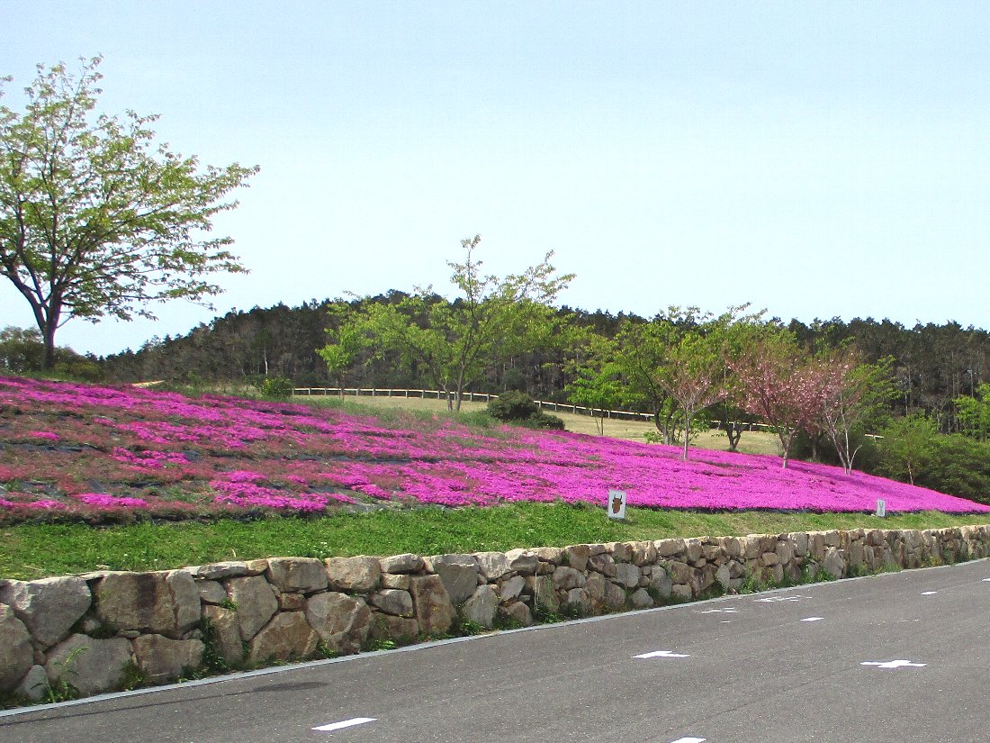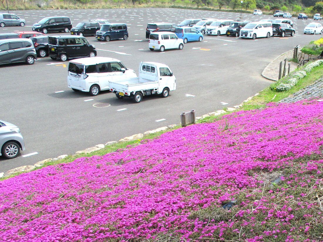 やってきたのは四杖にある「あぐりの丘」ですが駐車場の正面に「芝桜」が植えられていました(゜o゜)