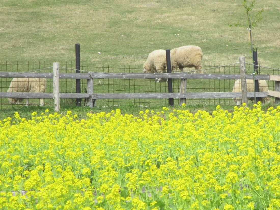 横の牧場には「羊」の姿も見えました(^^)