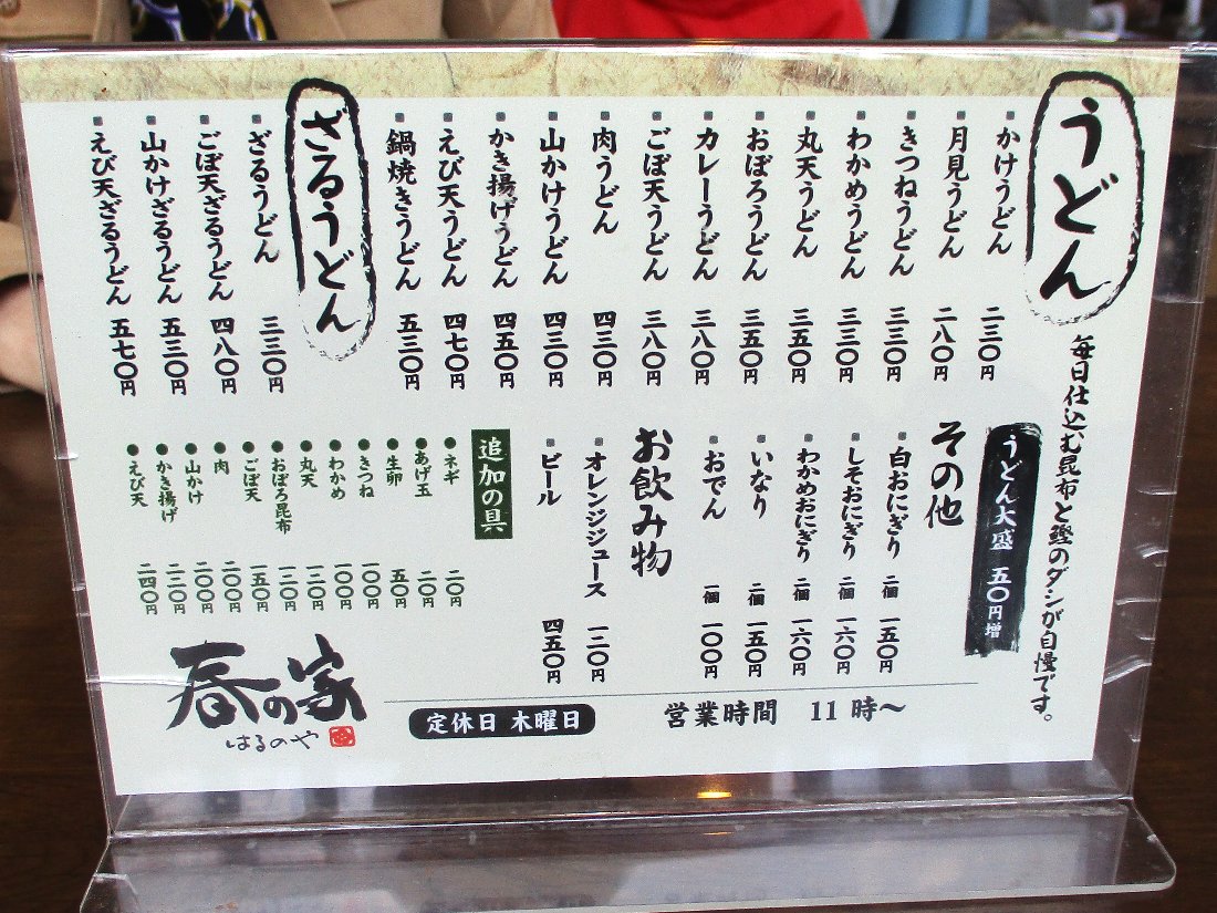 毎回載せているメニューですが「うどん」メニューは結構食べましたが「月見」「きつね」「わかめ」「丸天」「おぼろ」「山かけ」「えび天」は注文したことがありません・・・まぁ「わかめ」「山かけ」あたりは好きじゃありませんが(^^;