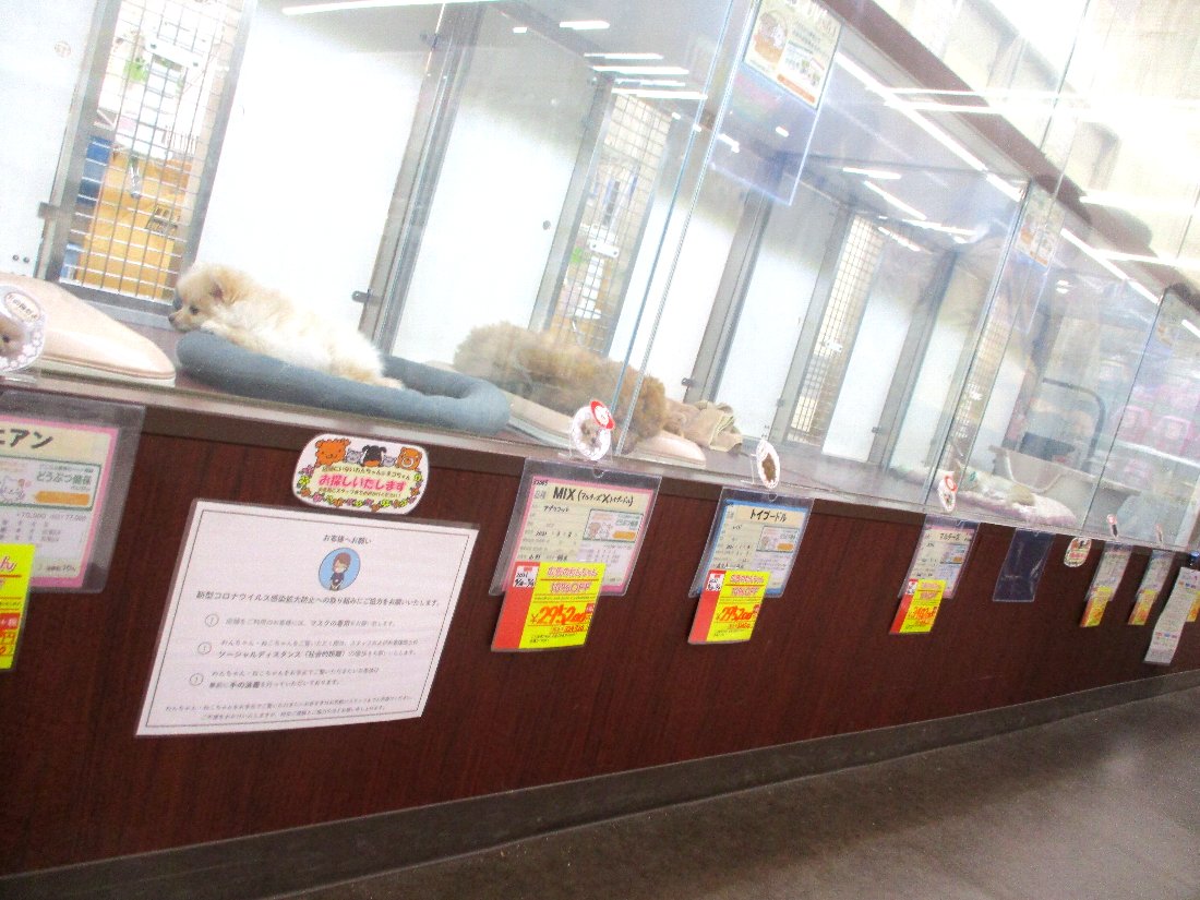 やはりメインは「犬・猫」でしょうね・・・ここに展示していた「ポメラニアン」も結構かわいかったのですが価格はいつぞや覗いた「ココウォーク」のお店の半額くらいでした(^^)