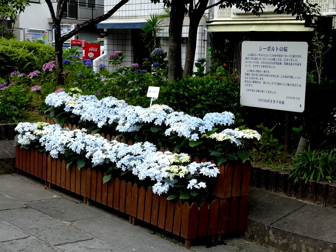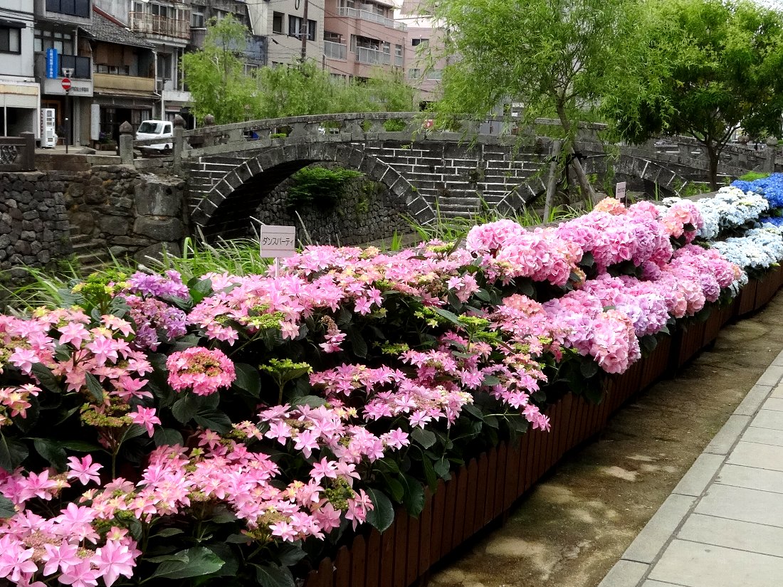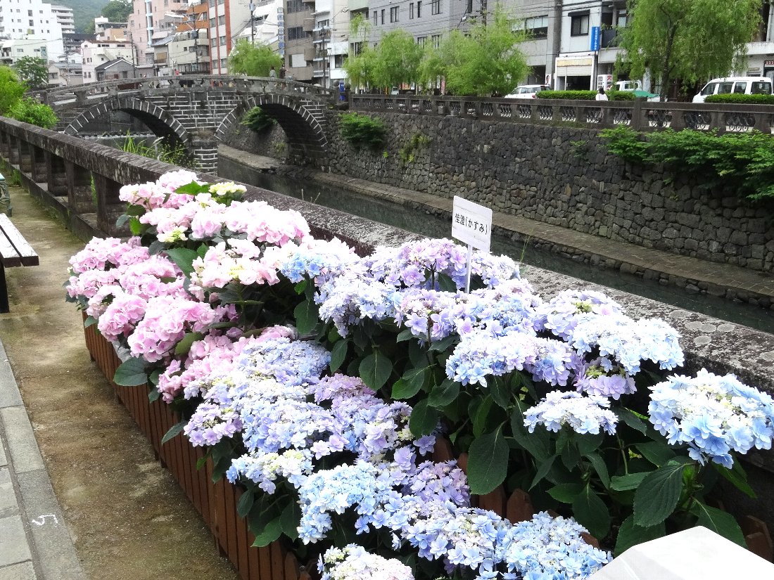 先日は早く行き過ぎて「紫陽花」がまだ無なかった「中島川公園」ですが「長崎B級グルメ紀行!」さんの記事によると飾られているみたいなので見に行くことにしました・・・最初の2枚以外は「アジサイ」の写真だらけです(^^;