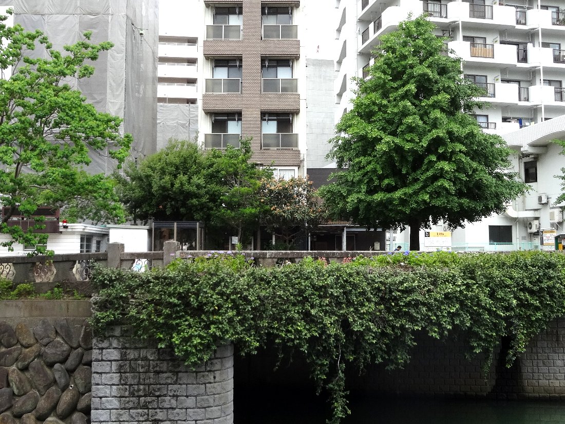 「青空市場」跡のパーキングに車を停めて「中島川」方面に歩いていきましたが「魚市橋」を渡った右側に何やら場違いな風景が見えますね