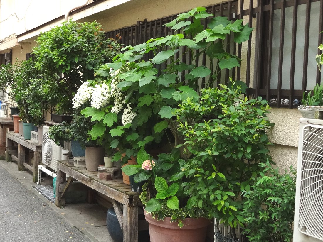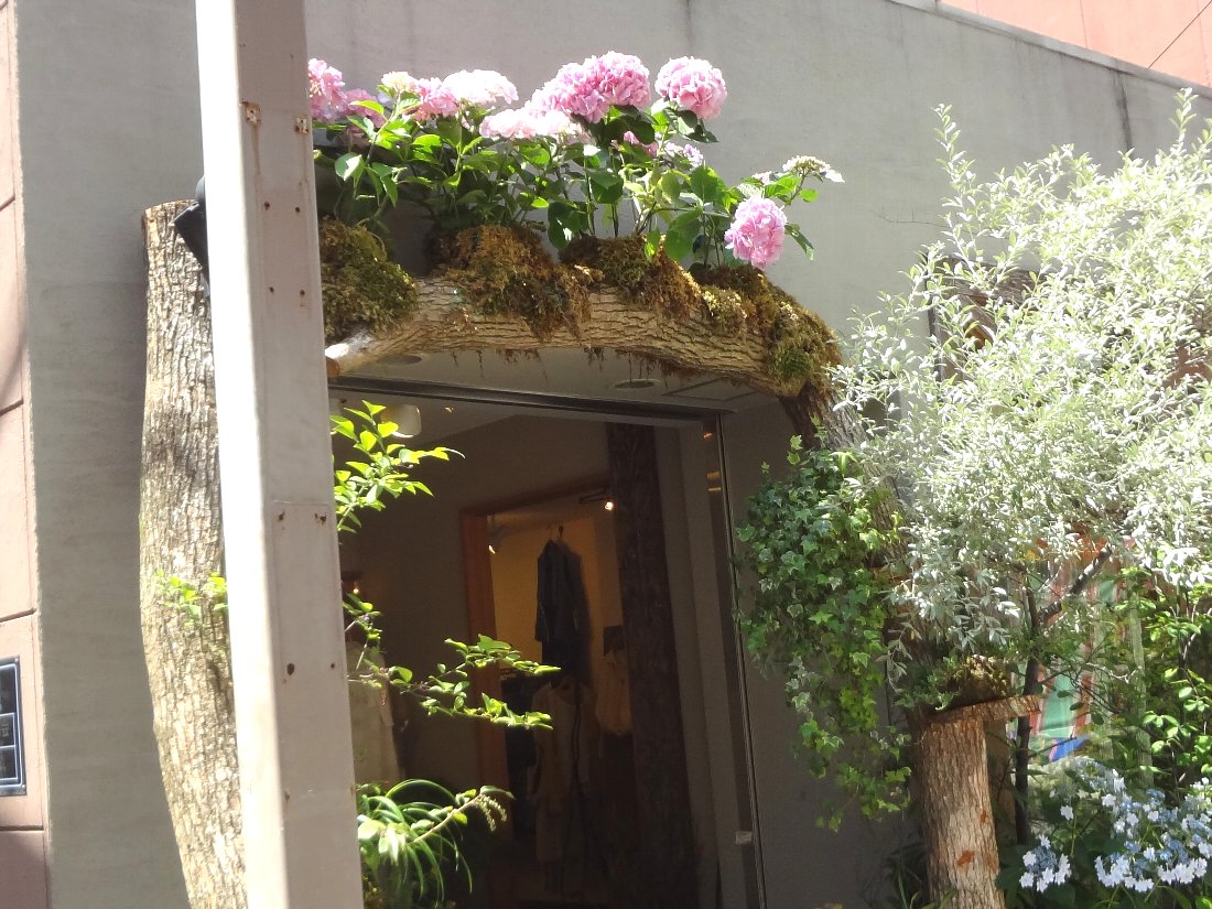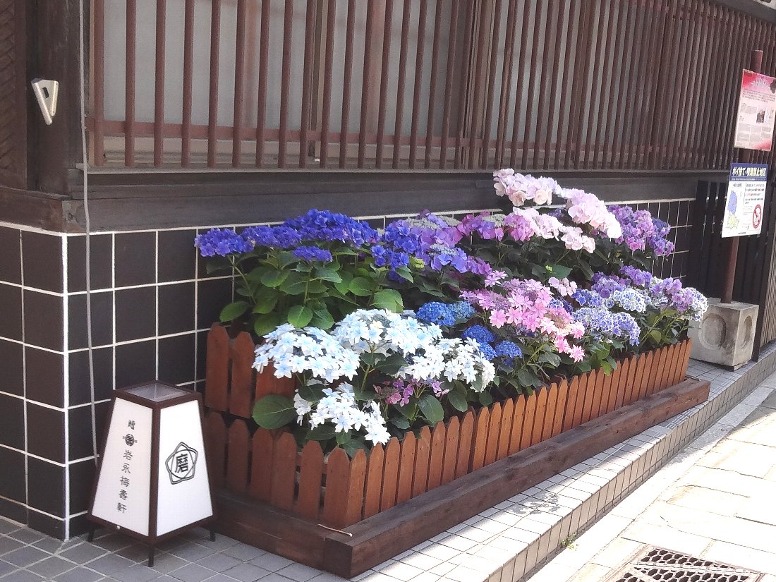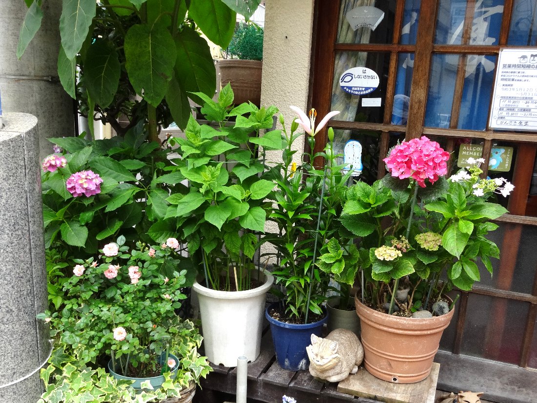 その先のあるブティック「山茶花」も店頭にはアジサイを飾っていますが