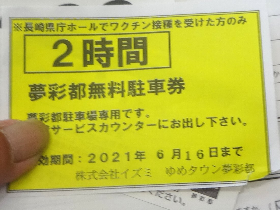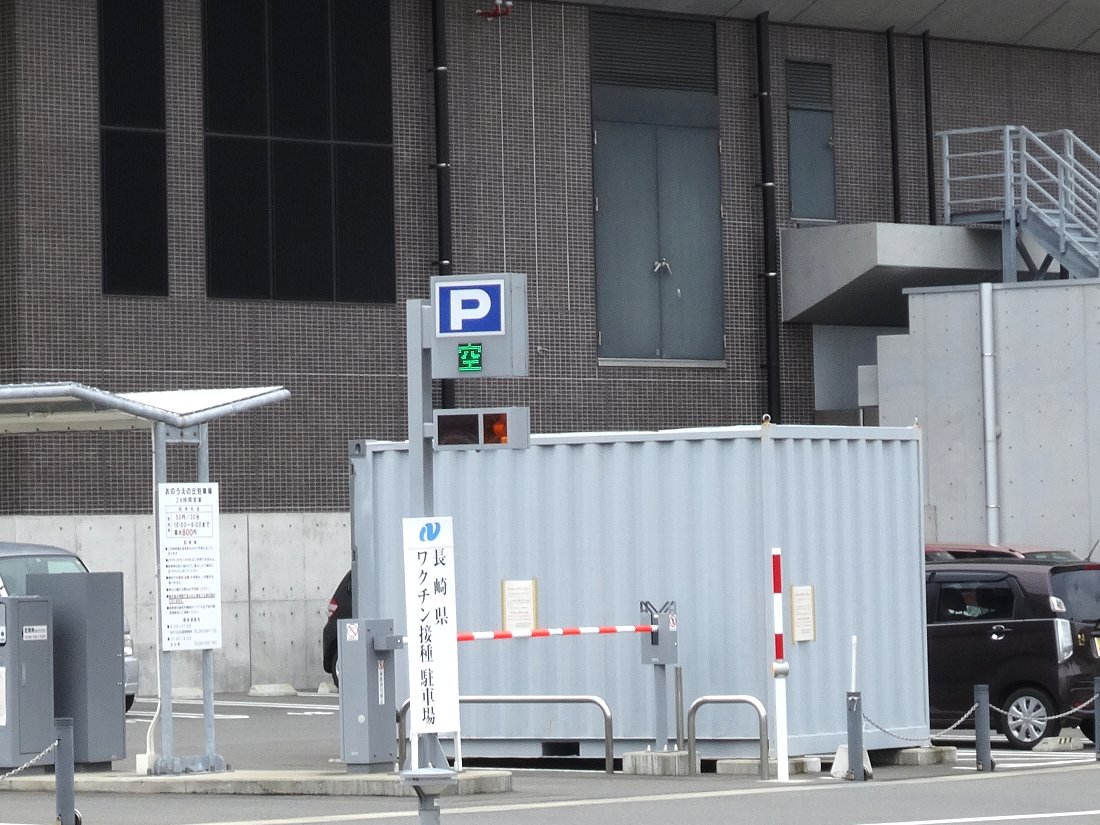 長崎市が運営している「市民会館」などの接種会場より空いていますし「2時間無料」の駐車券もあるので絶対に「長崎県庁会場」がおススメですね