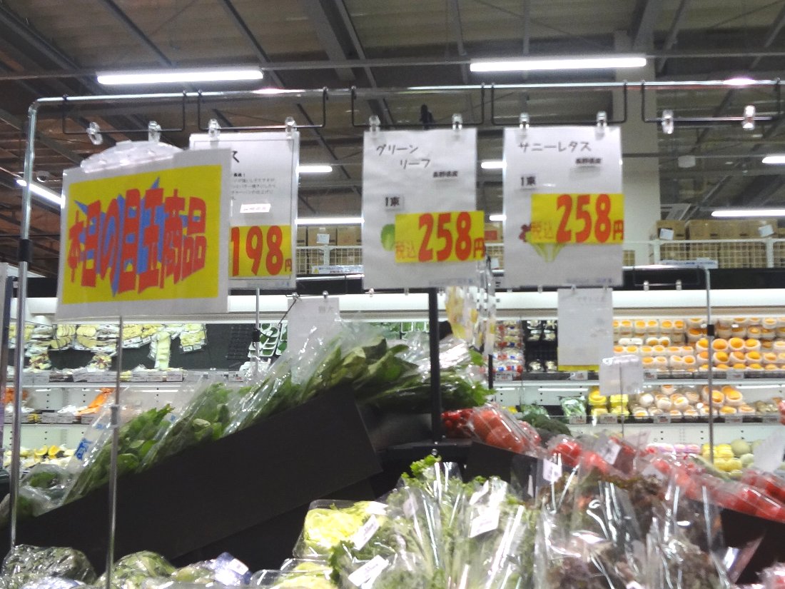 売り場の配置は「若葉町店」に似ていて「ドラッグコーナー」の奥に「青果コーナー」がありさらに奥に行くと「鮮魚」「精肉コーナー」があります