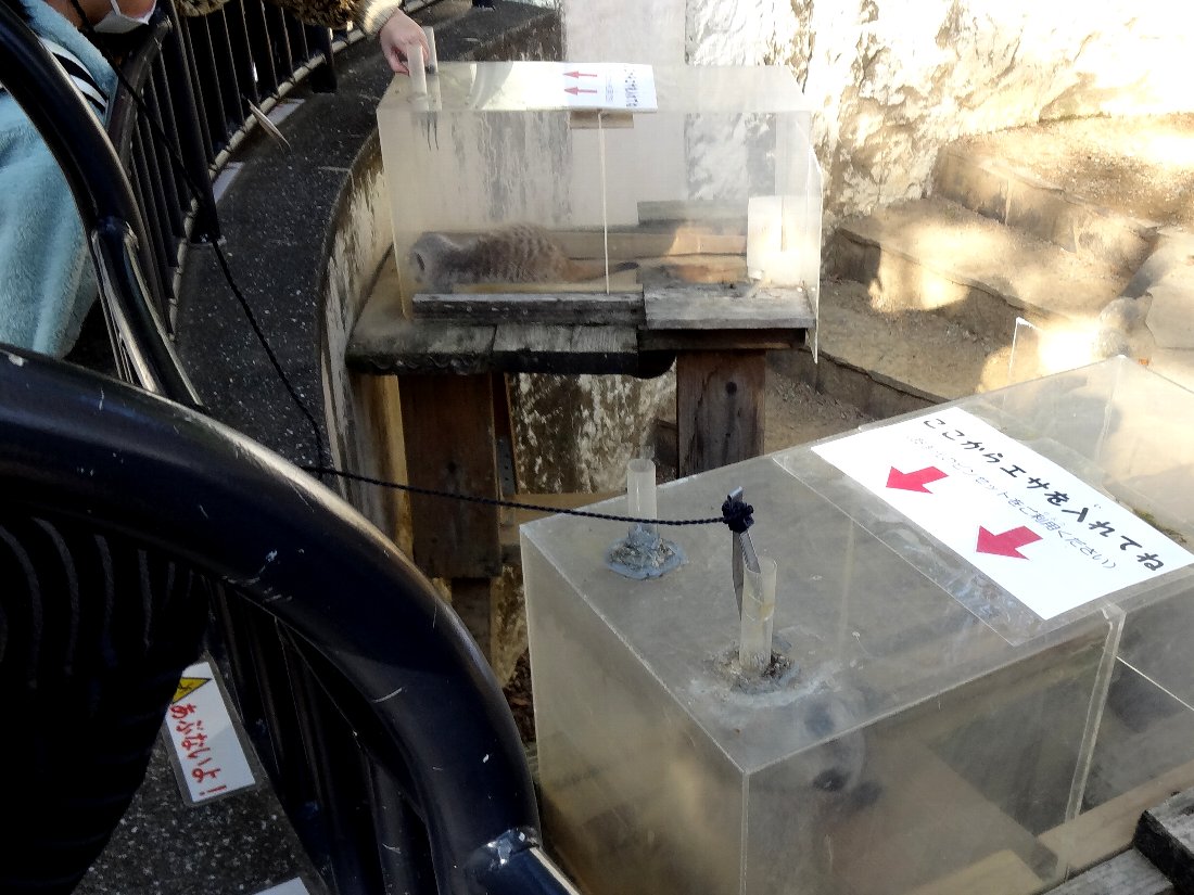 さらに先に進むと何と「ミーアキャット」も展示されていて「エサ」も販売していました(゜o゜)