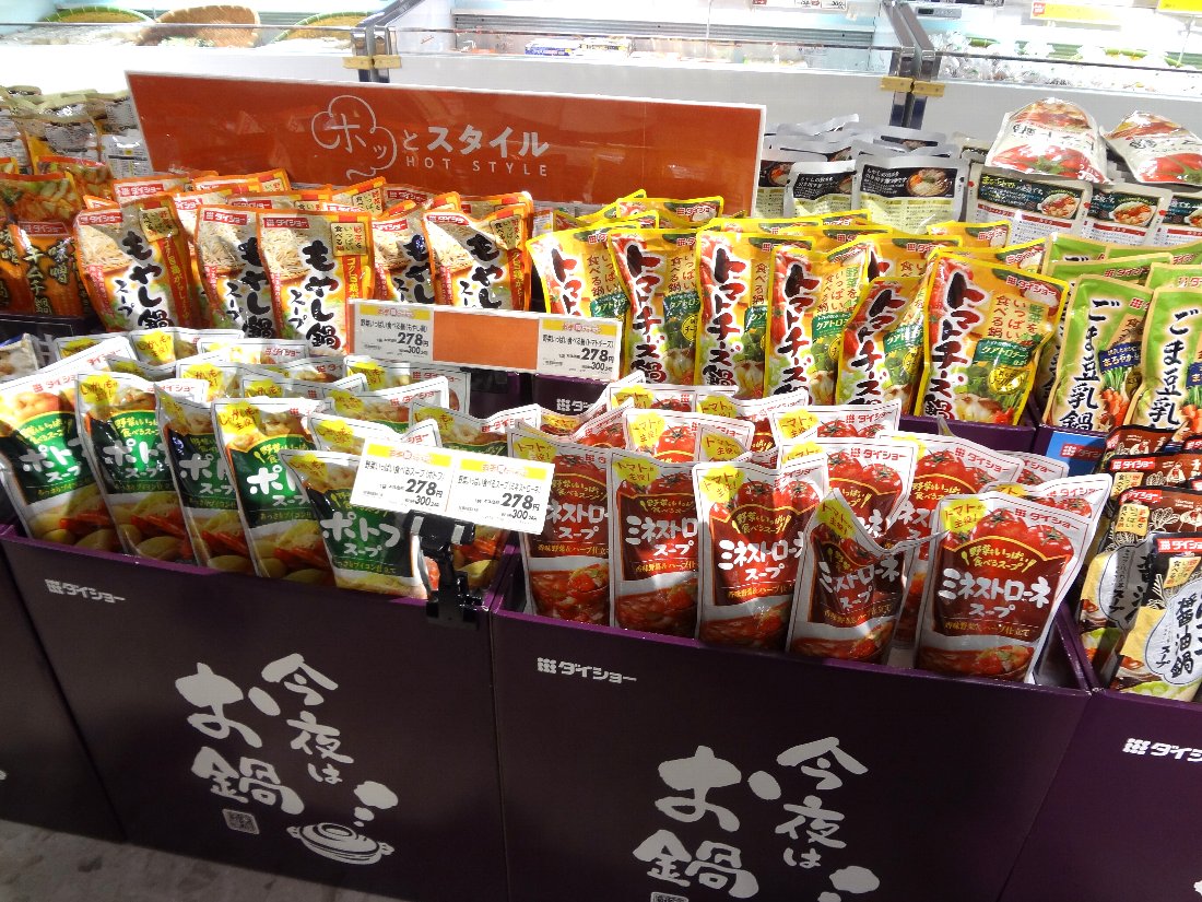 最近はどこの食品スーパーでも「鍋の素」を大量陳列していますが「ミネストローネスープ」「ポトフスープ」というのは初めて見たような気がします・・・我が家では「チョーコー」の商品か「だし昆布」しか使わないので無縁ですが(^^;