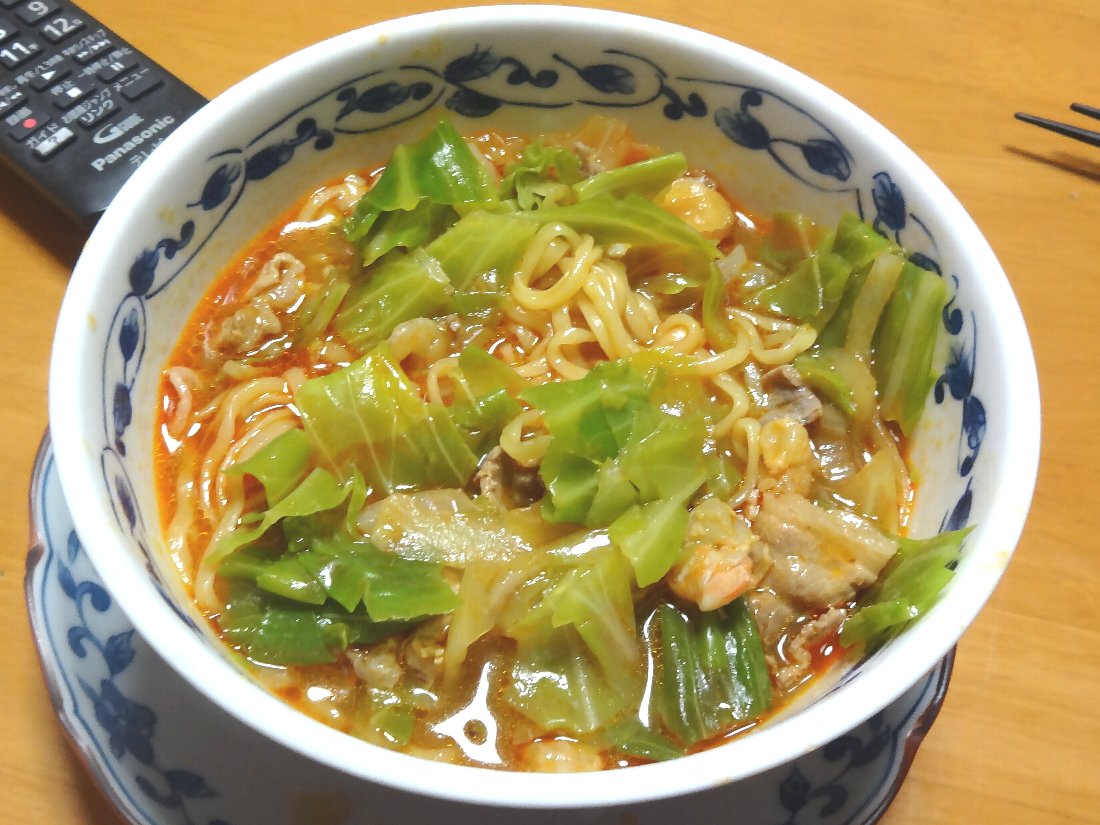 これも「鍋」ではなく「ラーメン」として作りました・・・やはりちょっと辛かったのですが思った以上に美味しかったですね(^^)