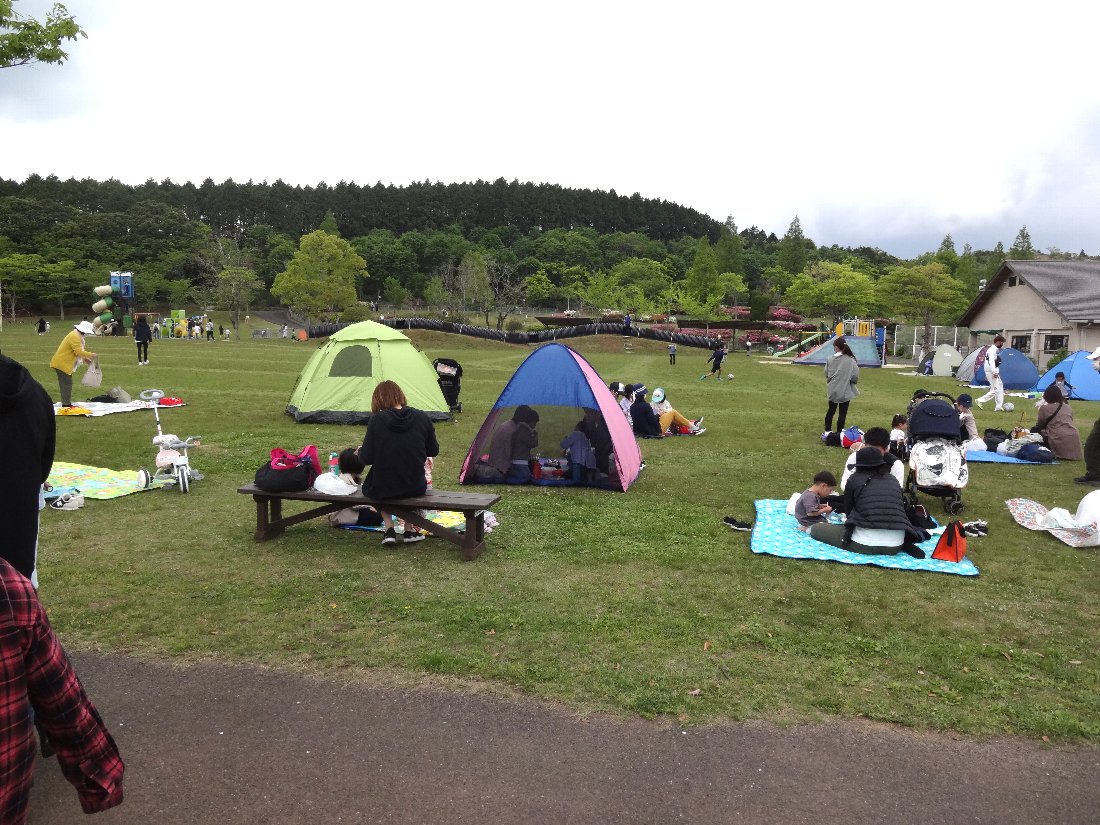 ちょっと先にある「芝生広場」には家族連れが大勢集まっていて「テント」や「レジャーシート」を広げていました