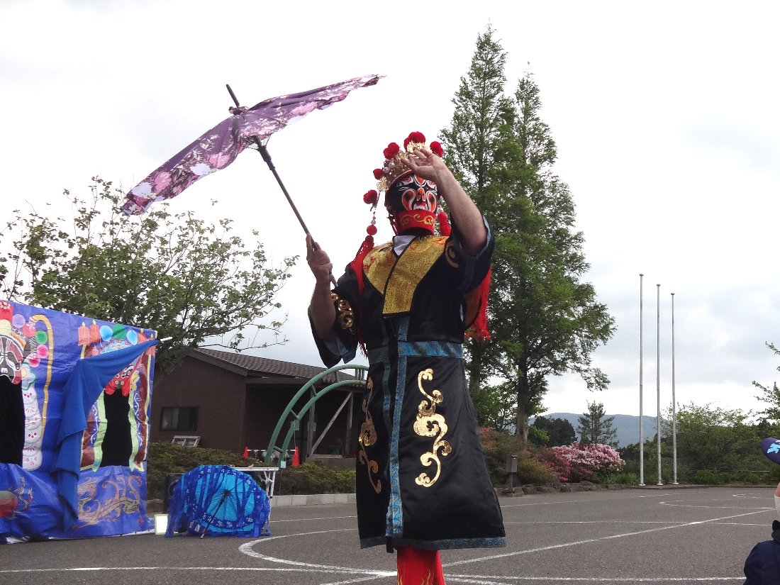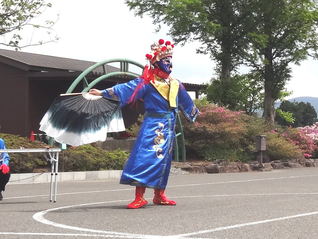 「園内マップ」を見ると右上に「野外ステージ」があるのでそこで開催するのかと思ったら「園内放送」で「間もなく管理棟の裏側で変面ショーが始まります」と案内があったので