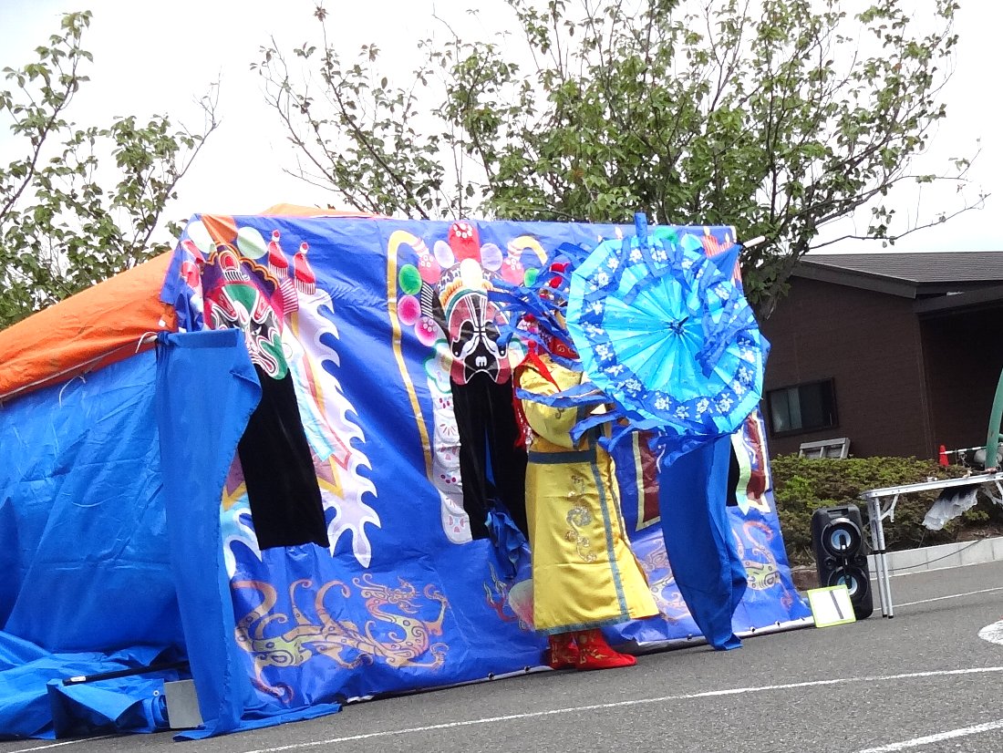 管理棟の裏に行くと「変面仕様」のテントと階段にお客さんが座っていたのでここで行うんでしょうね・・・階段に座って待っていると係の人が「コーンのある場所まで来ても大丈夫です」と案内したので最前列で見ることが出来ました