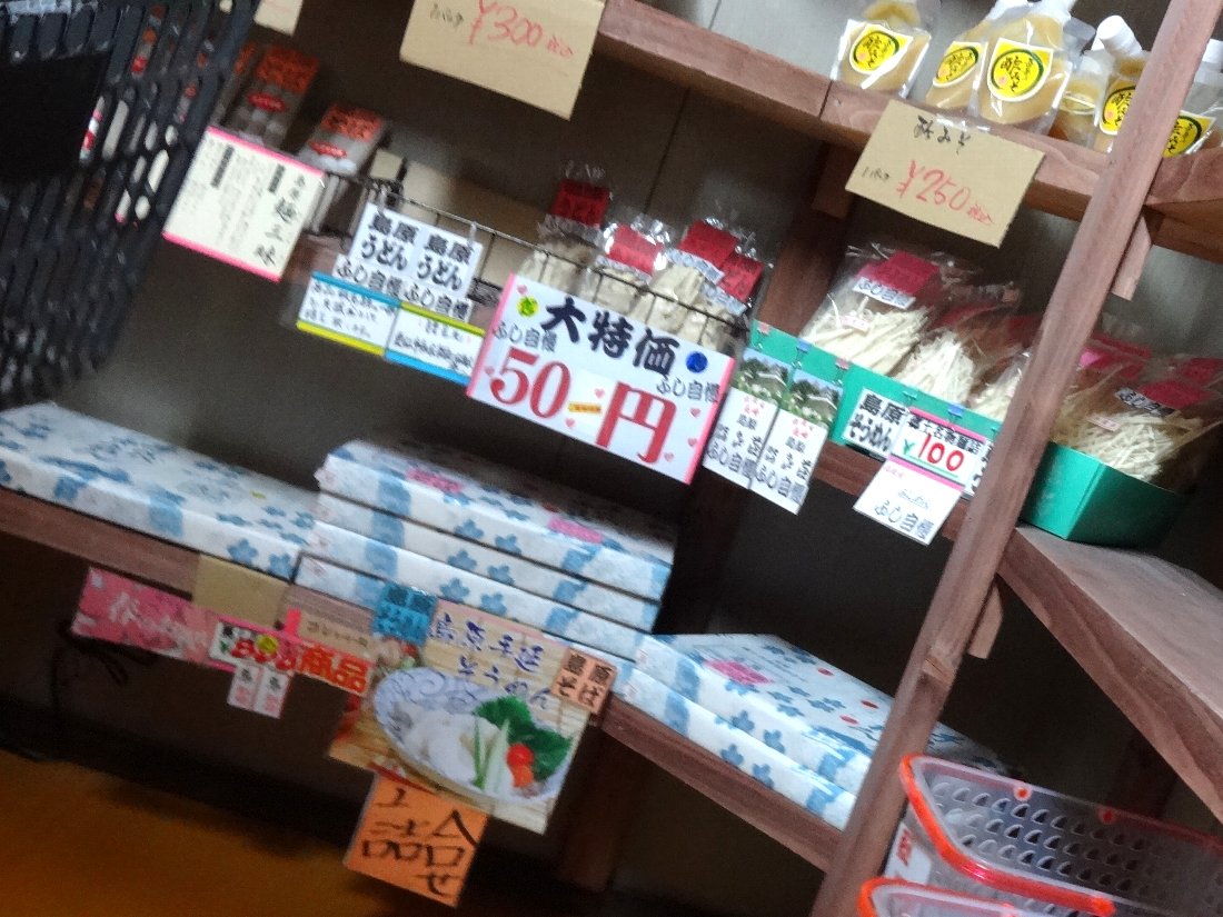 こちらの棚には野菜以外の「そうめん」などがありましたが「ふし麵」は50円ですって(^^)