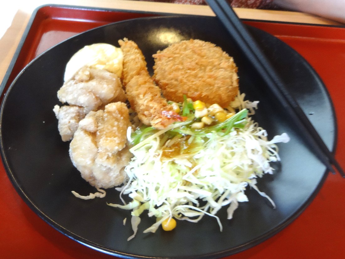 女房は「日替り昼膳」の「ミックスフライ膳」600円にしましたが当然「唐揚げ」はパスです