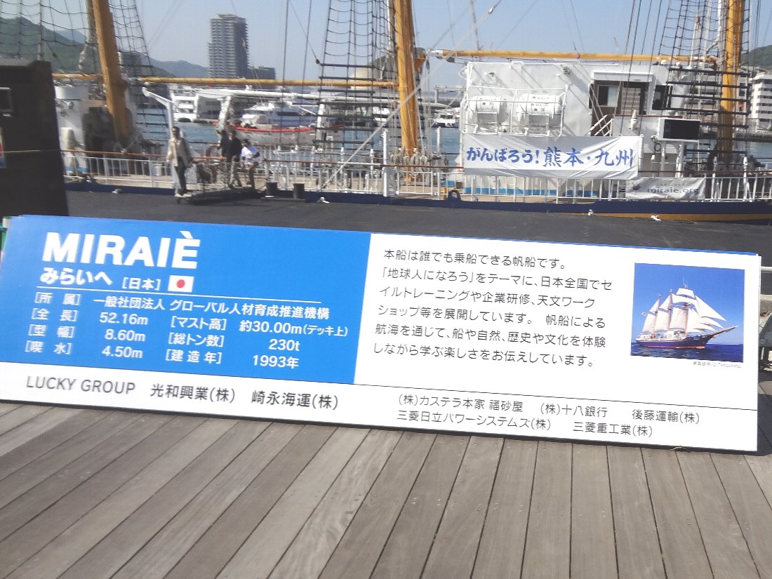 以前は大阪市が所有していた「あこがれ」は「一般社団法人グローバル人材育成推進機構」に所有者が代わり船名も「みらいへ」となりましたが帆船まつりには毎回参加してくれていました