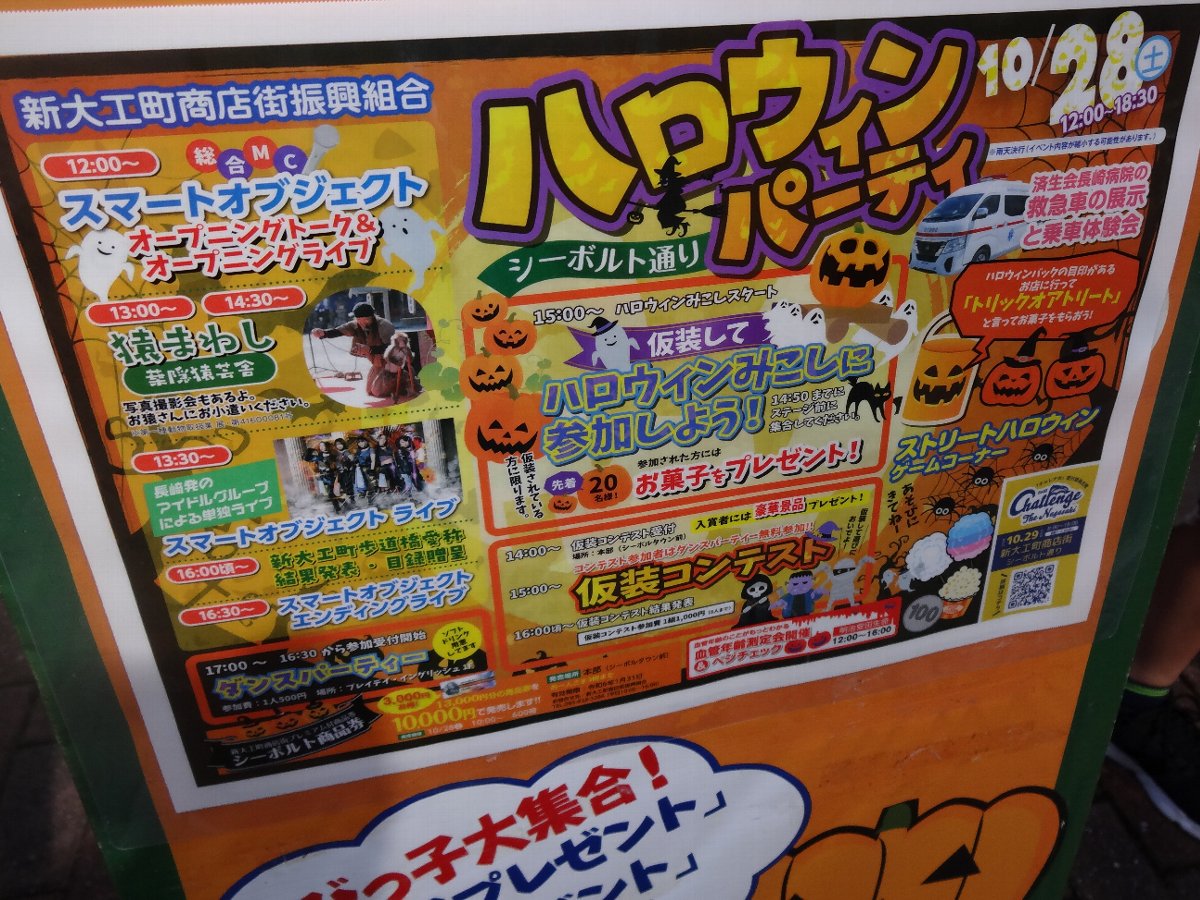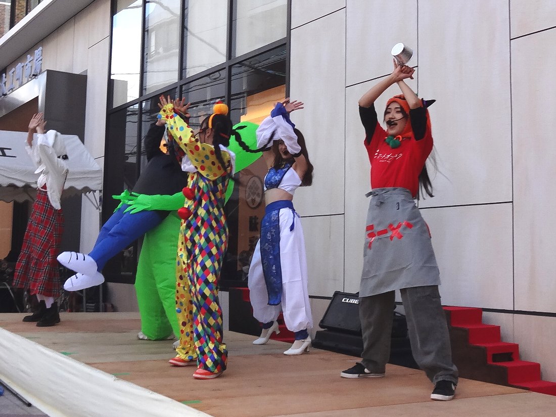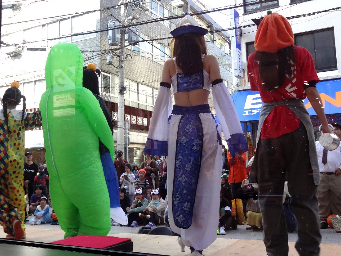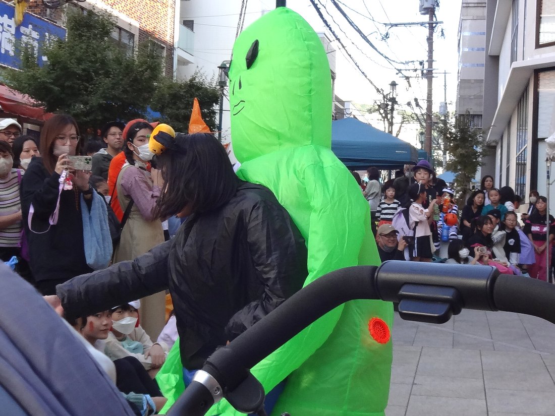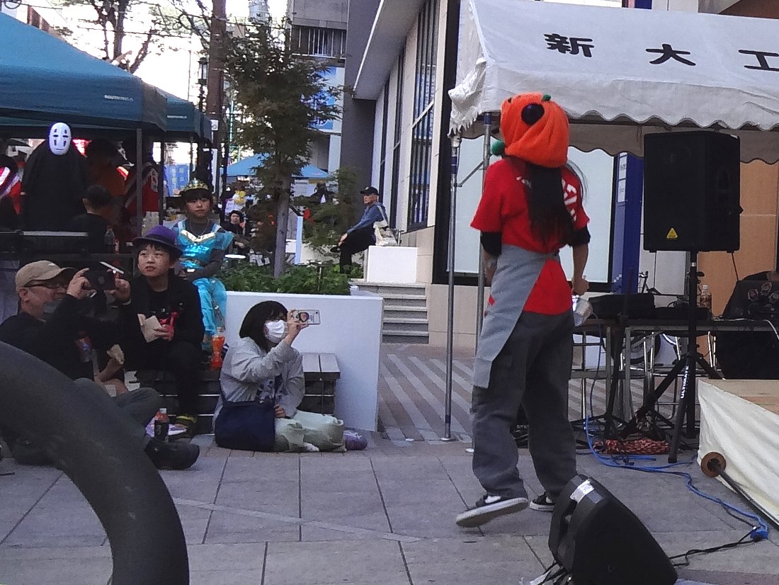 先ほどのポスターを見るとこの後「スマートオブジェクト」という「ご当地アイドル」のライブがあるそうなので見ていくことにしましたが、まだ少し時間があったので商店街の中を少し見て回ることにしました・・・「ハロウィンパーティー」ということであちこちに子供向けの出店がありました
