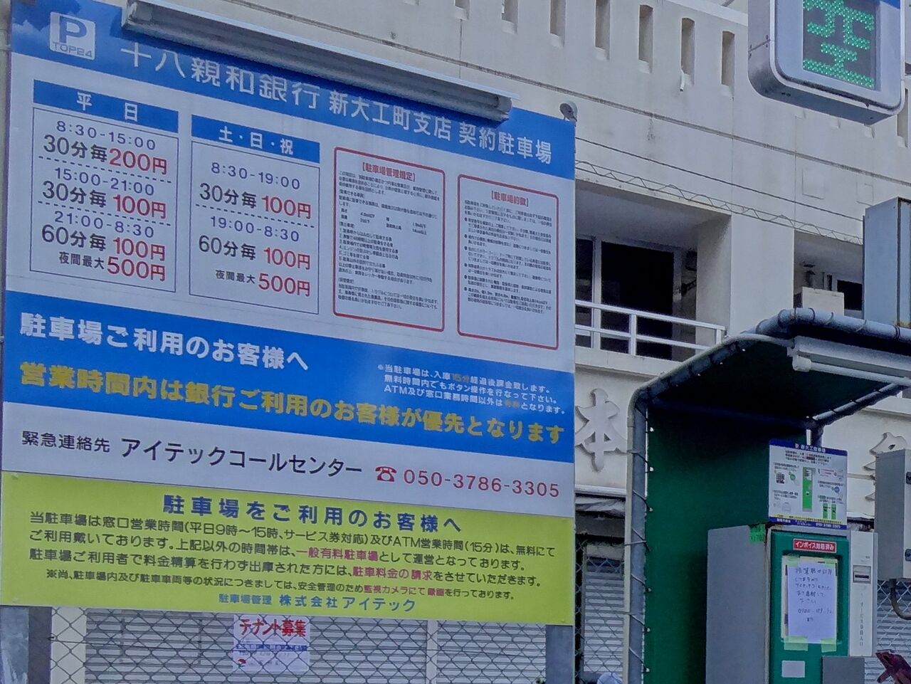 「ハロウィンパーティー」というのが開催されていたので付近のパーキングは軒並み満車・・・しょうがなく「十八親和銀行」の駐車場に停めましたがここも週末は30分100円なんですね
