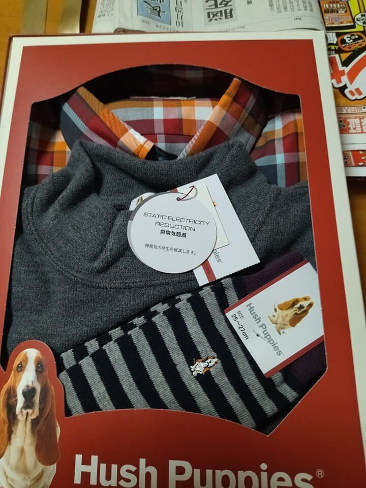 夕方に娘家族が自宅を訪れ今までに何度も貰った「ハッシュパピー」のシャツセットでしたが