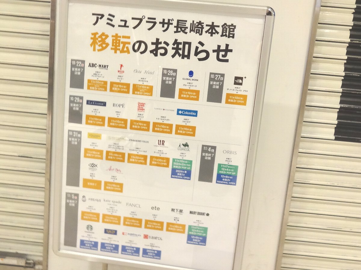 本館にあったお店の移転案内ですが閉店するお店もあるんですね
