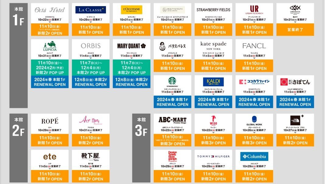 取りあえず今月のオープン&リニューアルオープンの予定だそうですが衣料品とコスメのお店ですから私には無縁ですね(^^;