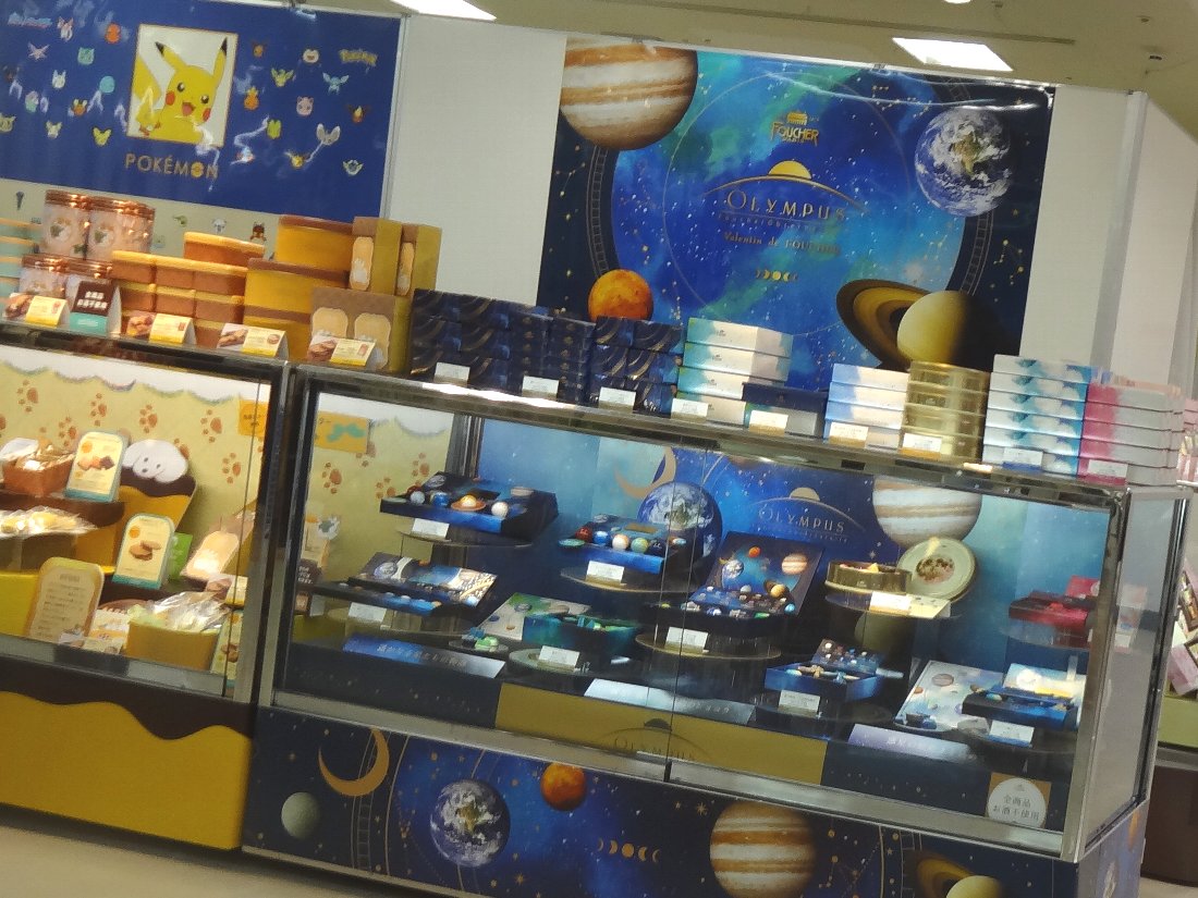 フランスの「フーシェ」と日本の「松風屋」との技術提携で「オリンポス」という高級チョコレートができたそうですね・・・隣の「ポケモン」はこれも「メリーチョコレート」だそうです