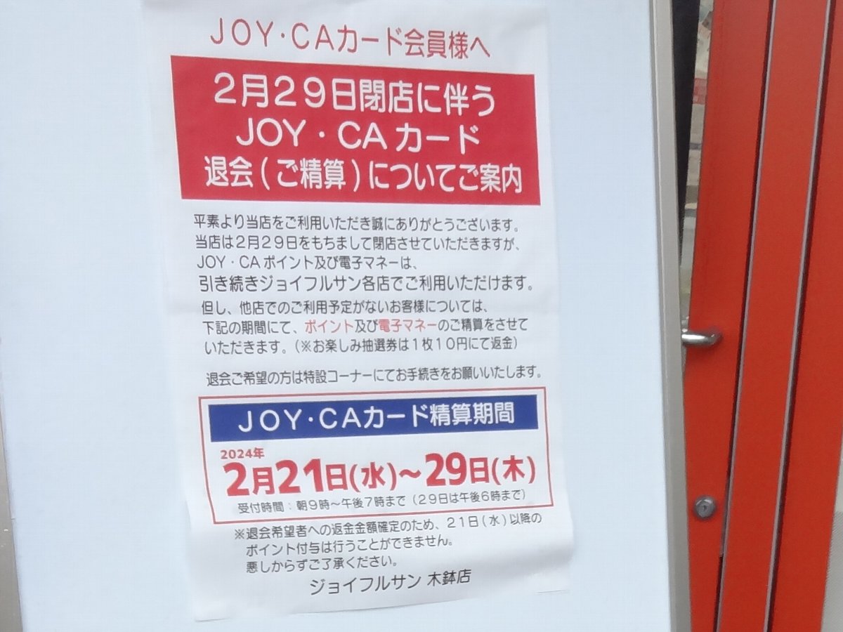 最終日だというのにいつもと同じような価格だったのはやはり残った商品は他の「ジョイフルサン」に回すのでしょうね