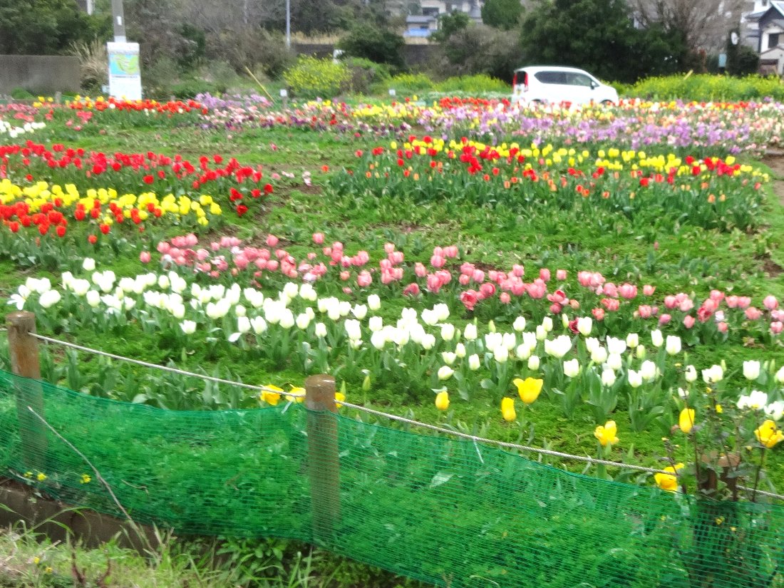 香焼の「安保地区」にきましたがチューリップが咲いています・・・コロナ期間中は報道されませんでしたが毎年チューリップは植えていましたし、今年は「オープニングイベント」も数年ぶりに行われたみたいですね