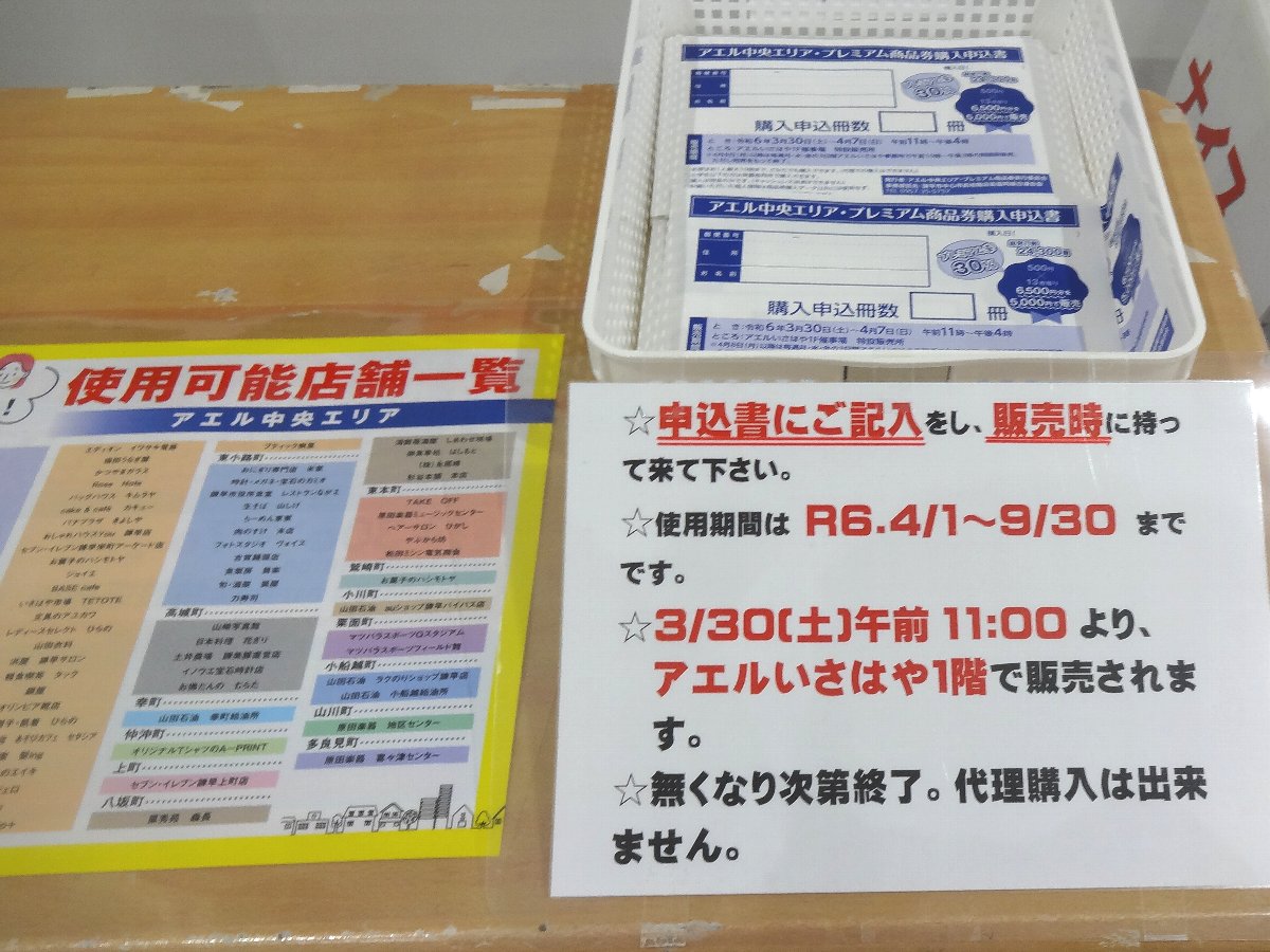 「アエルイースト」にやってきましたが入口に先ほどの「アエル中央エリア プレミアム商品券」の申込書がありました