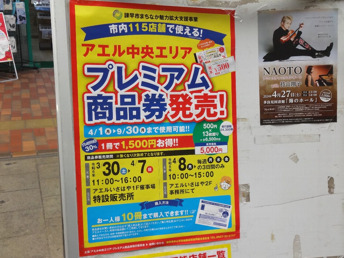 「アエル中央エリア プレミアム商品券」というのを売り出すそうですが私たちには無縁ですね(^^;