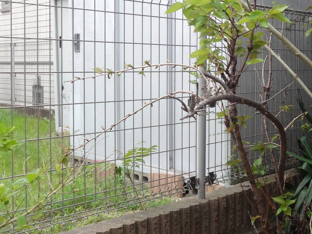 「枝垂れ八重桜」もつぼみが着いています