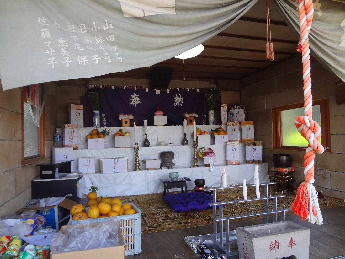 10年くらい前はかなり大掛かりにやっていたのですが「コロナ」最中の2年前に比べても祭壇や「お供え物」が寂しくなっています